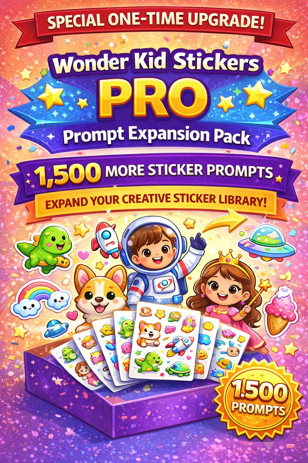 Unlock 1,500 Additional Sticker Prompts designed to help you create even more adorable sticker packs in seconds.